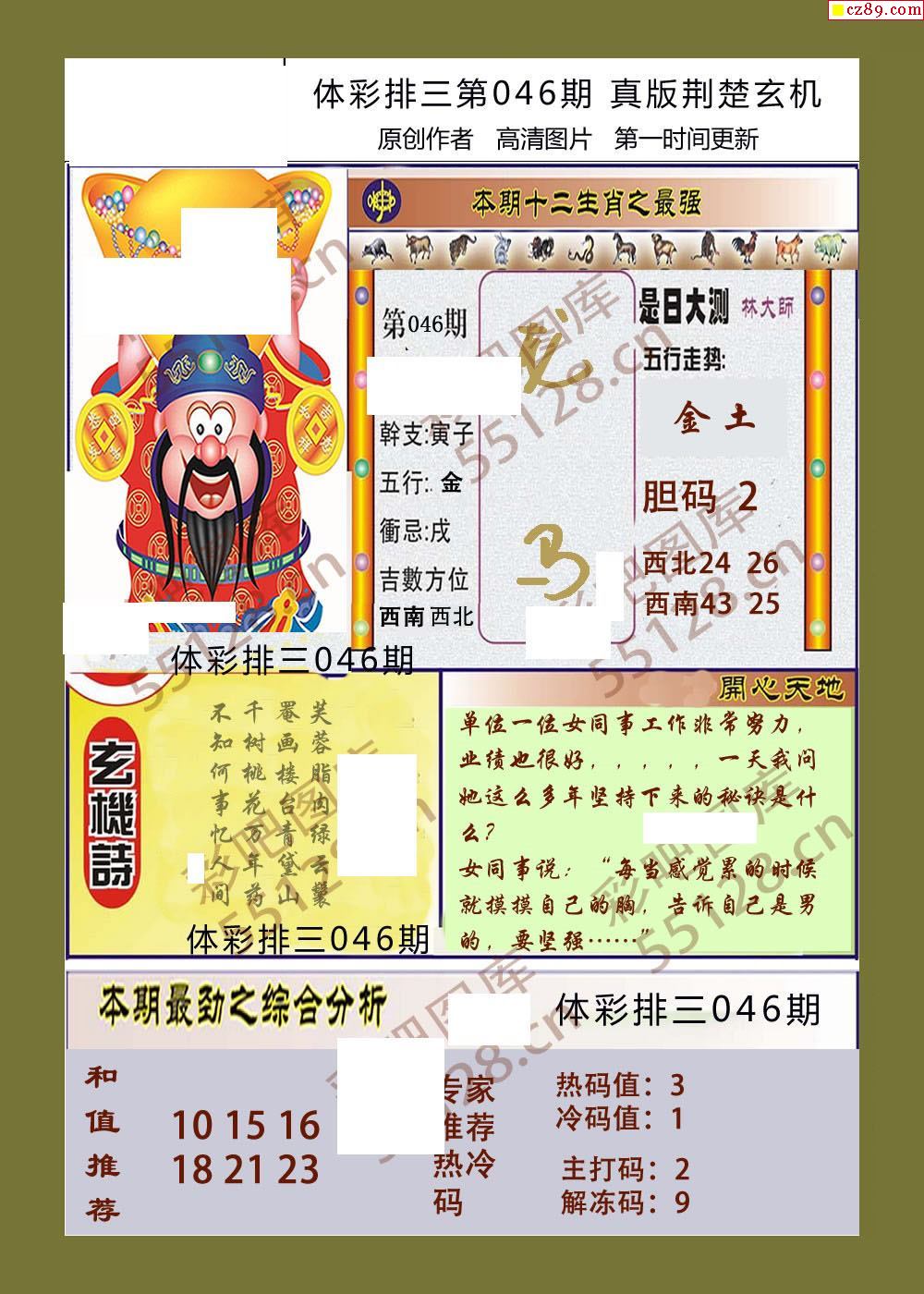 荆楚玄机046期体彩p3图谜